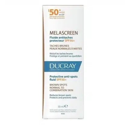 Le fluide antitaches protecteur SPF50+ MELASCREEN est le 1er fluide antitaches quotidien très haute protection qui prévient et réduit l’apparence des taches brunes, tout en protégeant la peau contre les UVB, les UVA courts et longs, la lumière bleue et les effets délétères de la pollution.